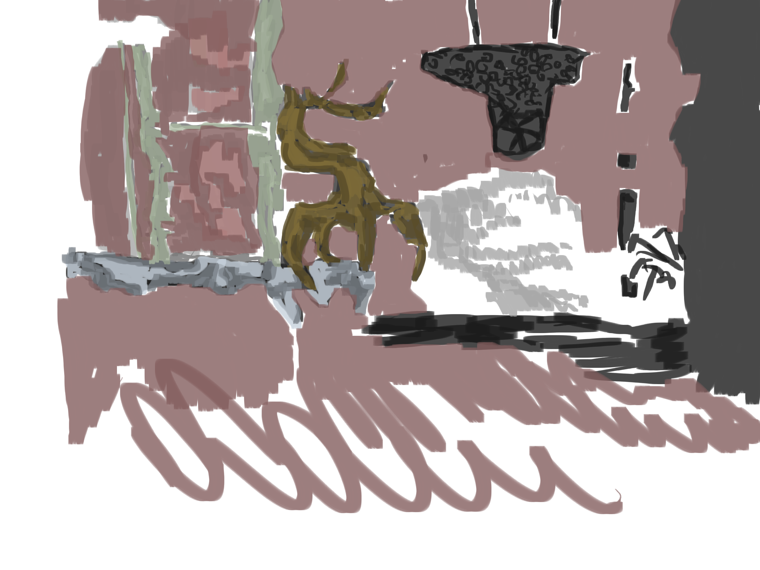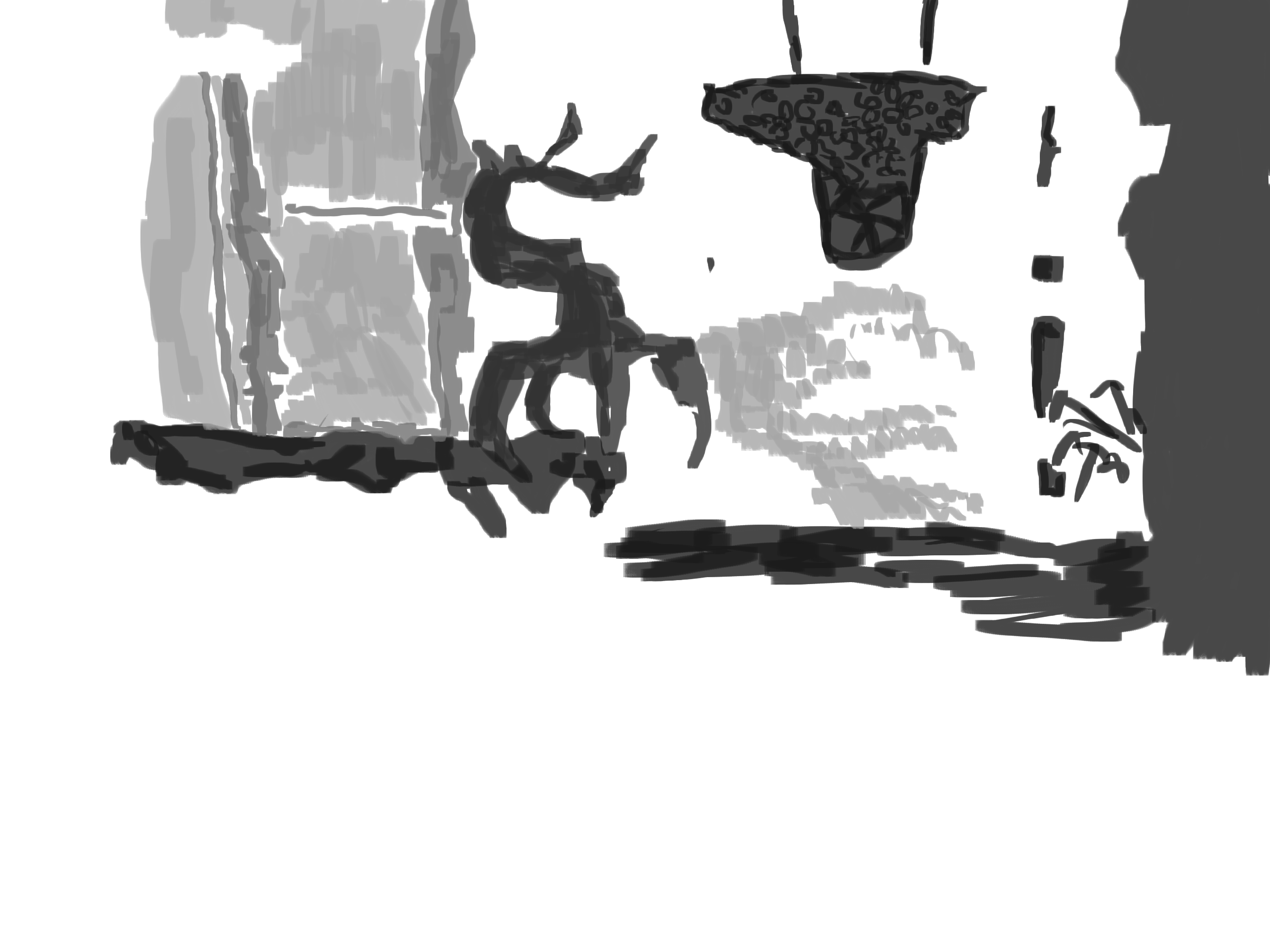 Greyscale. Taking elements from two line drawings.