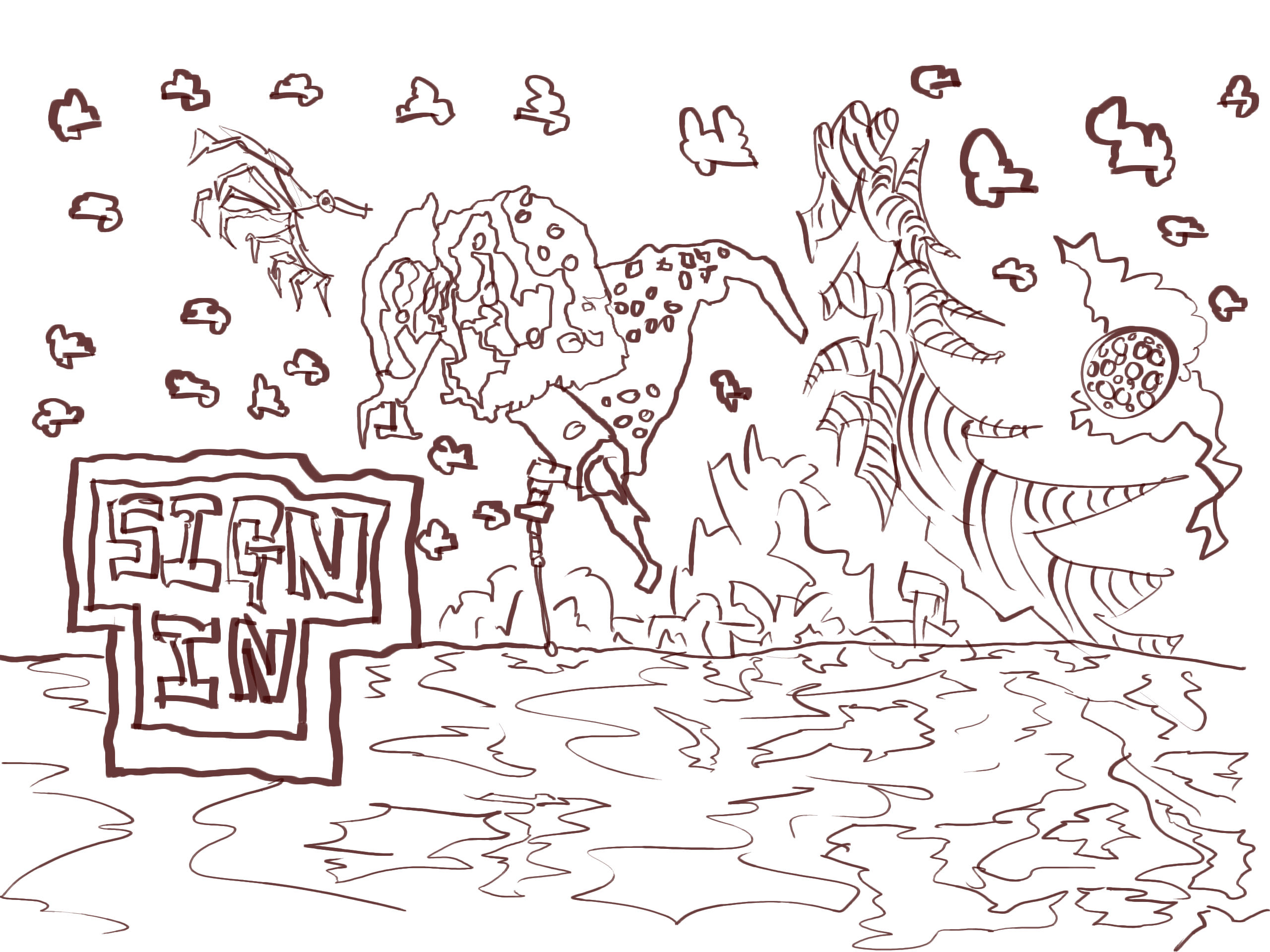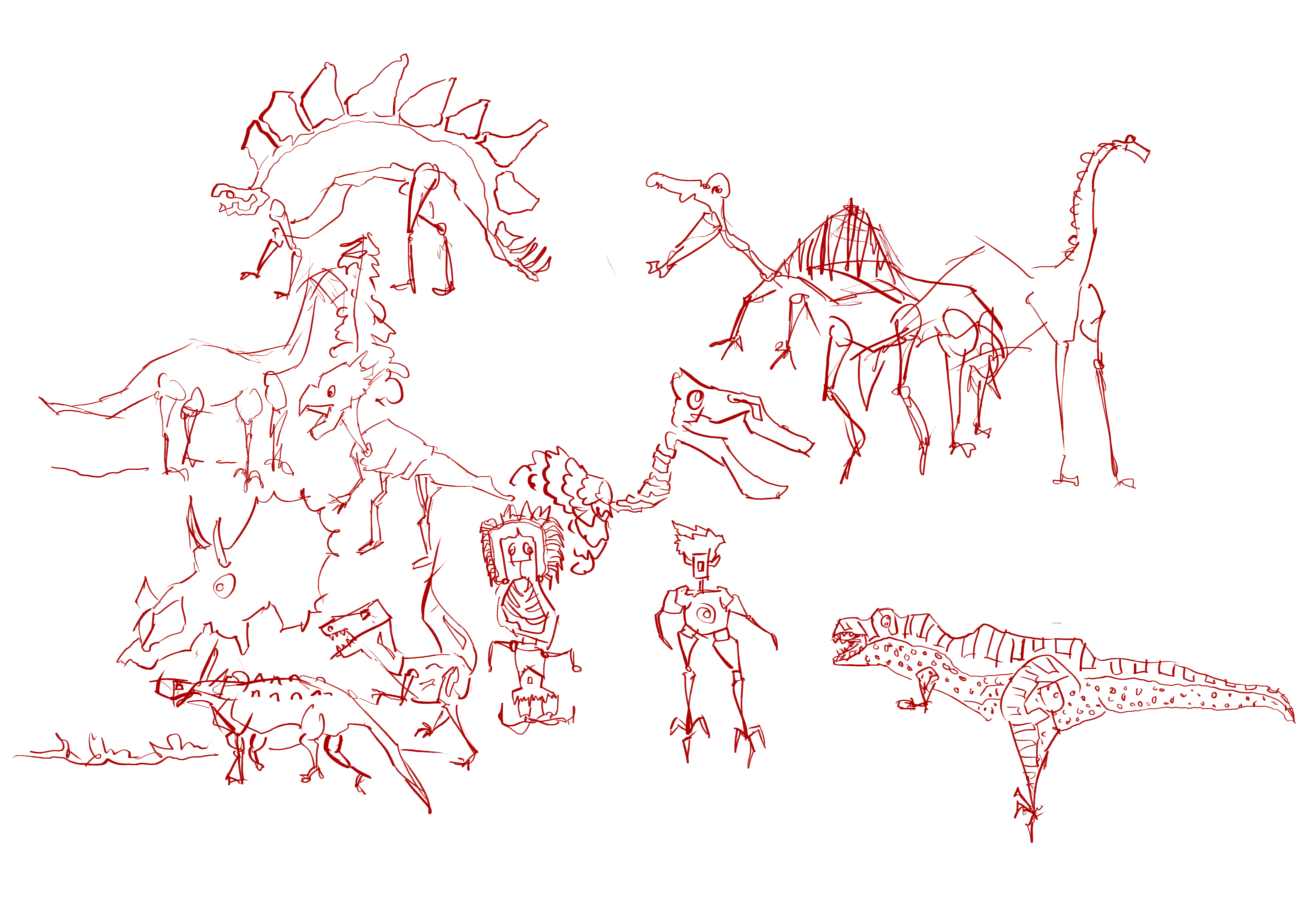 Line layer. Lots of doodling of dinos and landscapes.