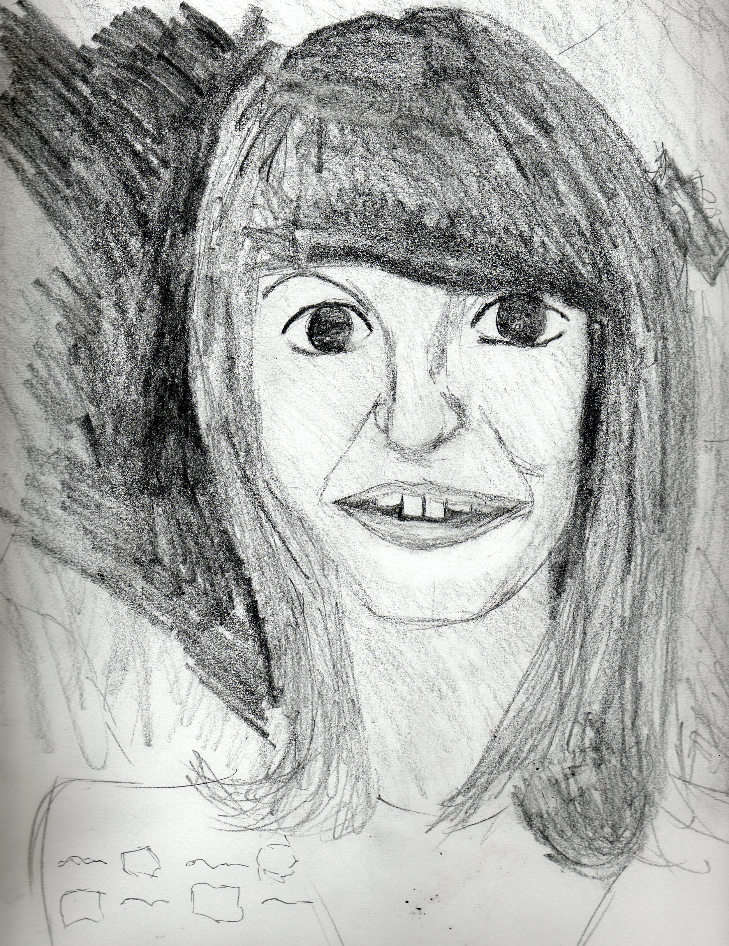 ' oh wow lovely'. Cassie from seasons one and two. This was drawn with a HB mechanical pencil - which allows for much finer lines than previous drawings here. I was given this pencil during my time at the Palmerston North School of Design. I like the blocky shapes created in this portrait.