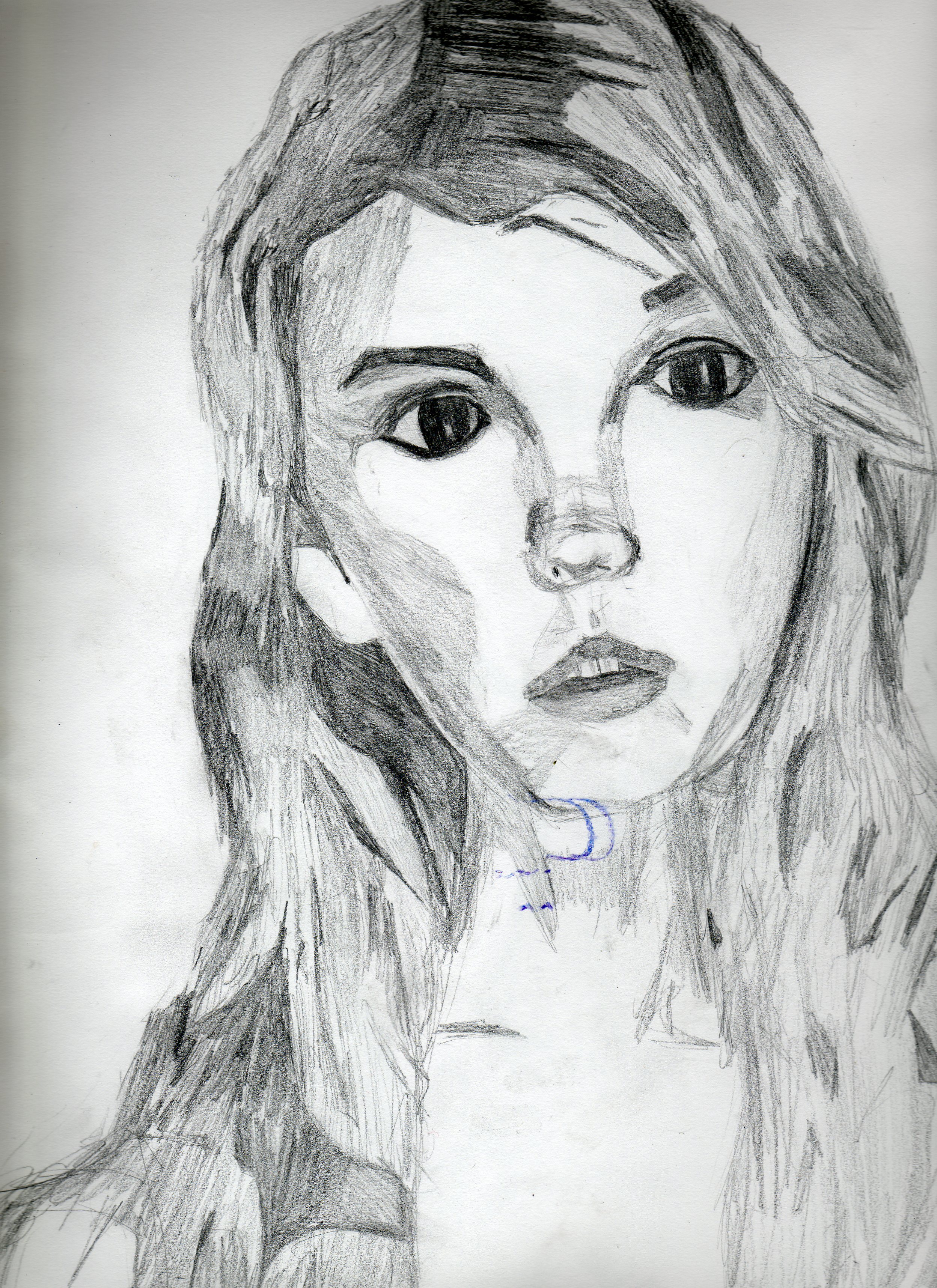 Lily Allen. I’ve always enjoyed drawing Lily Allen. The eyes look somewhat wonky in this, with the right eye being higher than the left. My measuring skills have certainly improved with my increased observational skills.