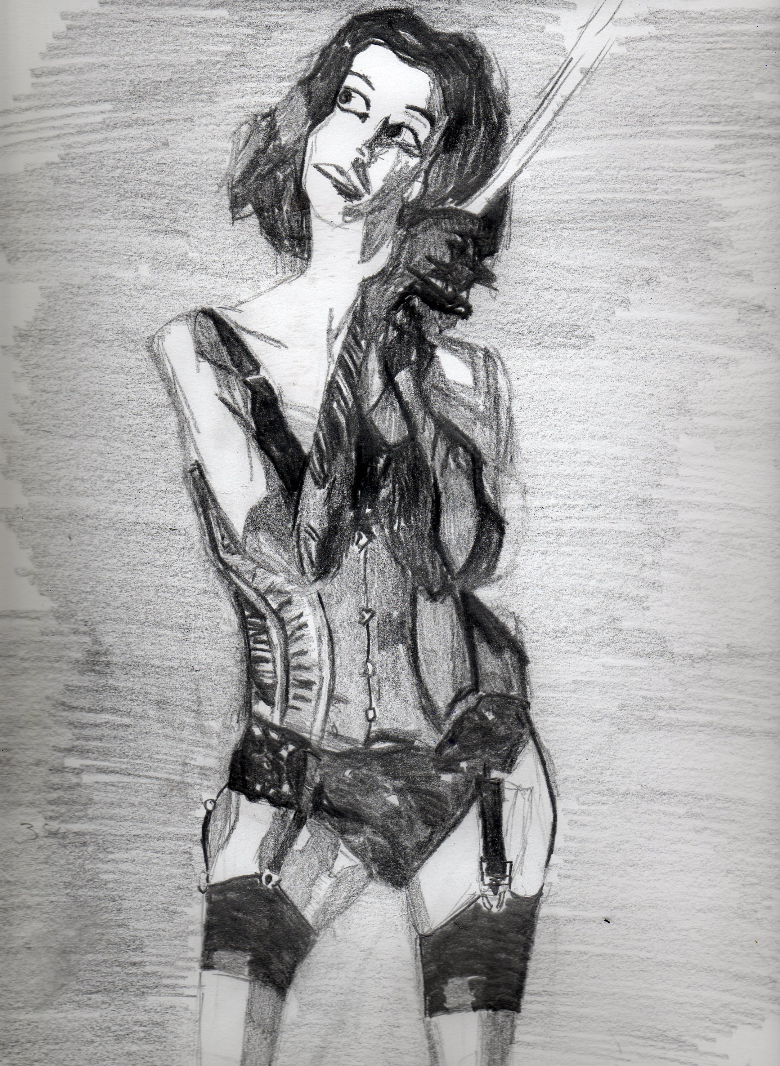 This was drawn with using a stock image as reference from DeviantArt.com. Very strong contrast between the lights and dark…. nowadays I wouldn’t leave areas white but rather color with light amounts of