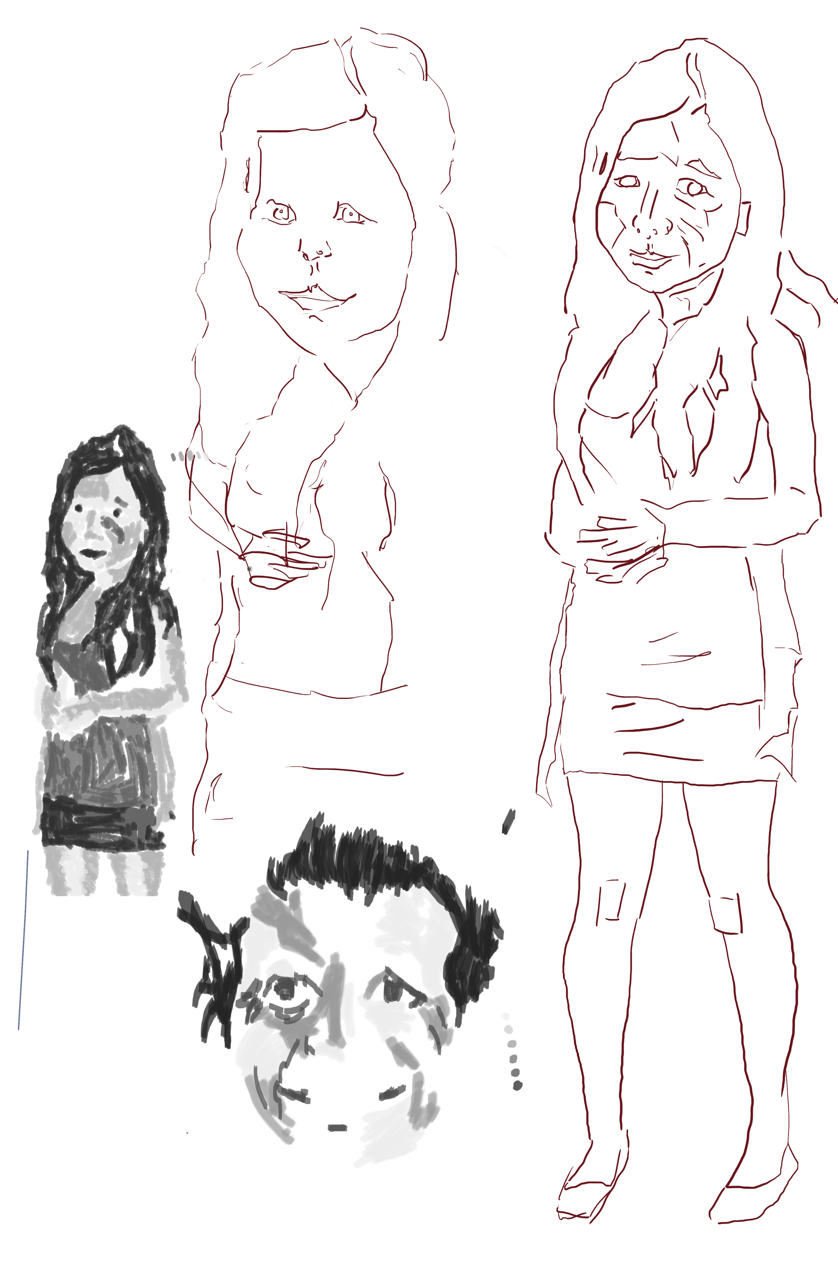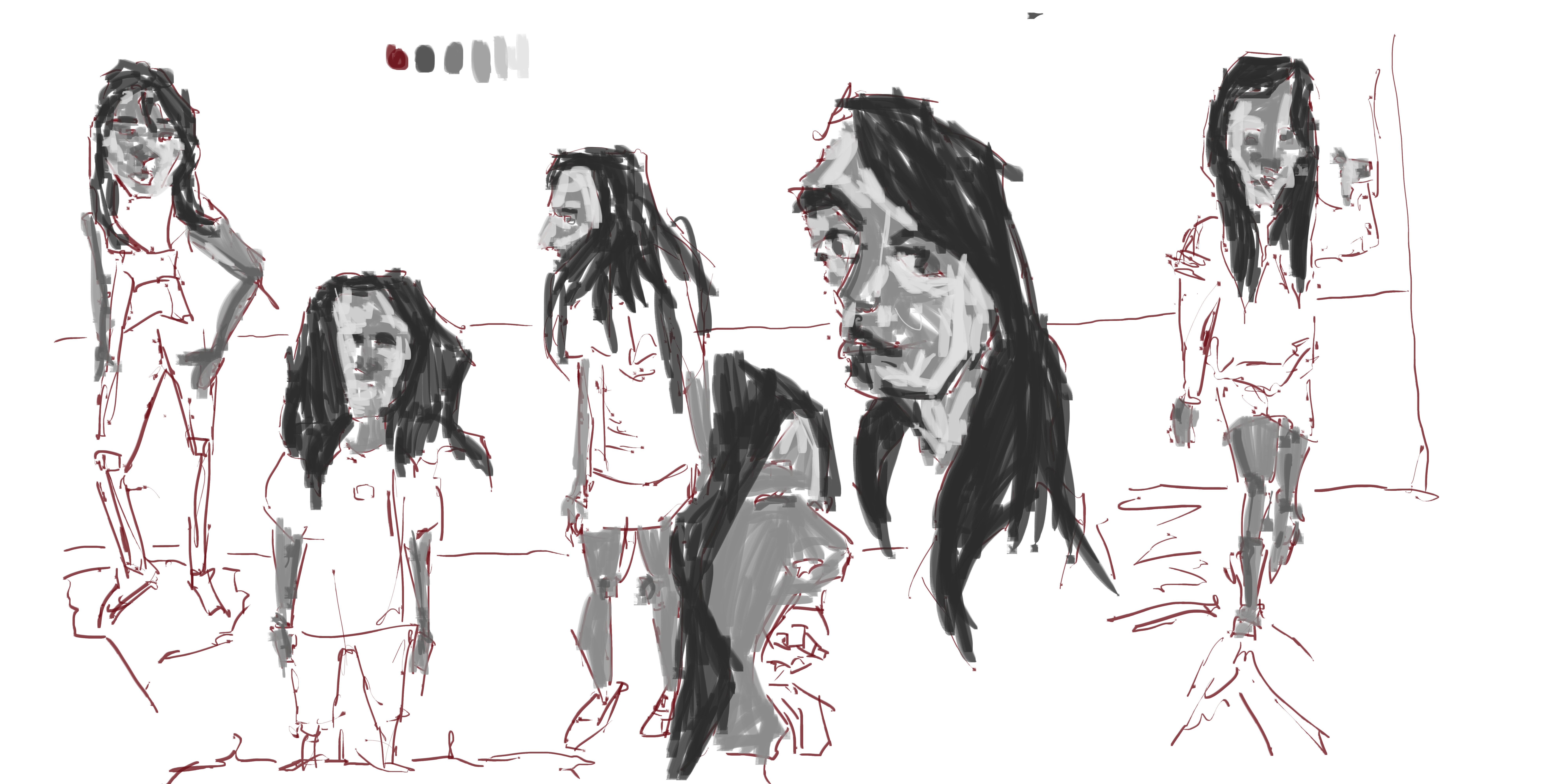 I used a several of the photos I had taken to do some figure and portrait studies. It had been sometime since I had worked like this and I think it’s always important to keep up with studies of people. The process is the same as always - red line, followed by gray scale tone.