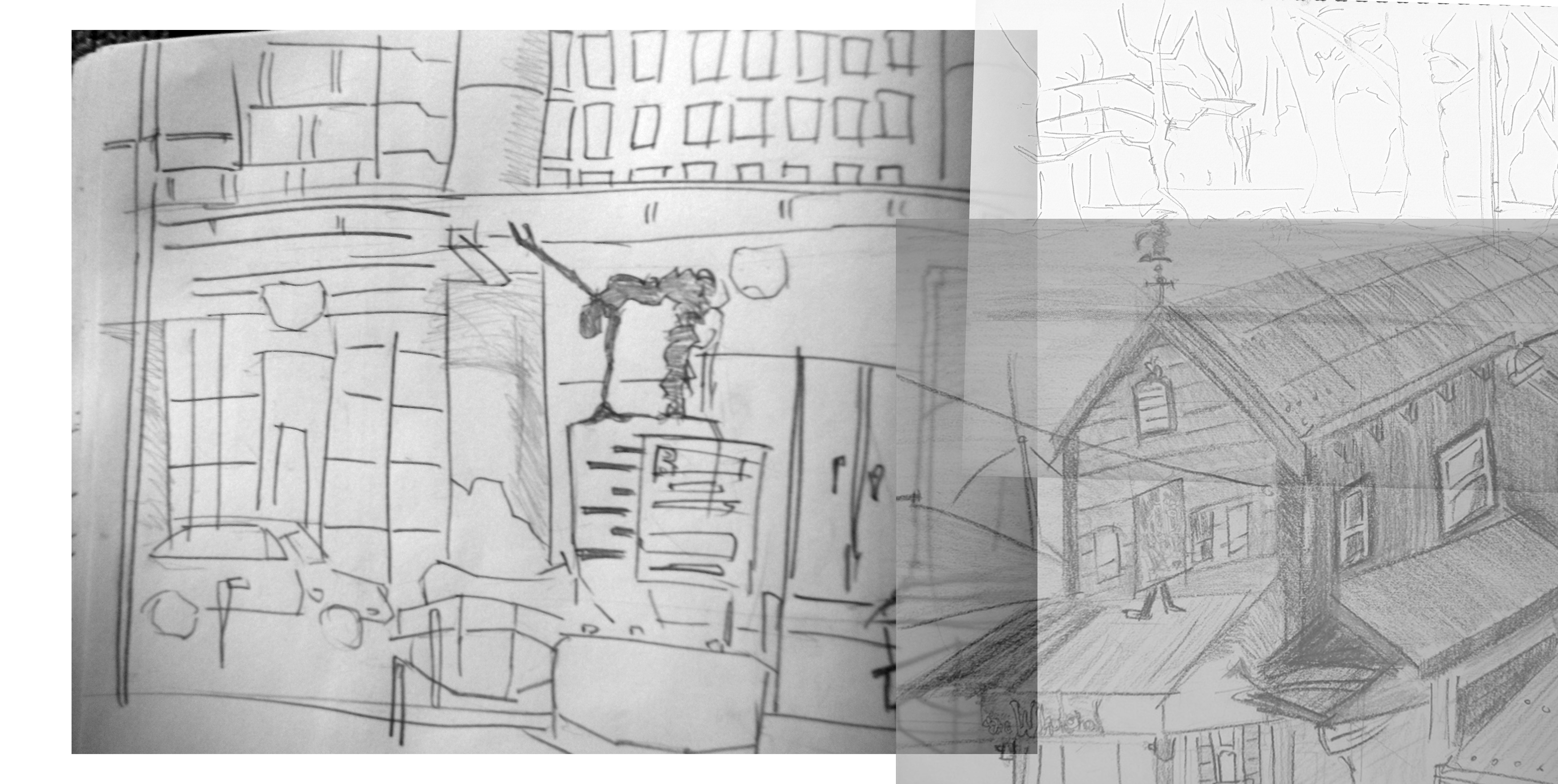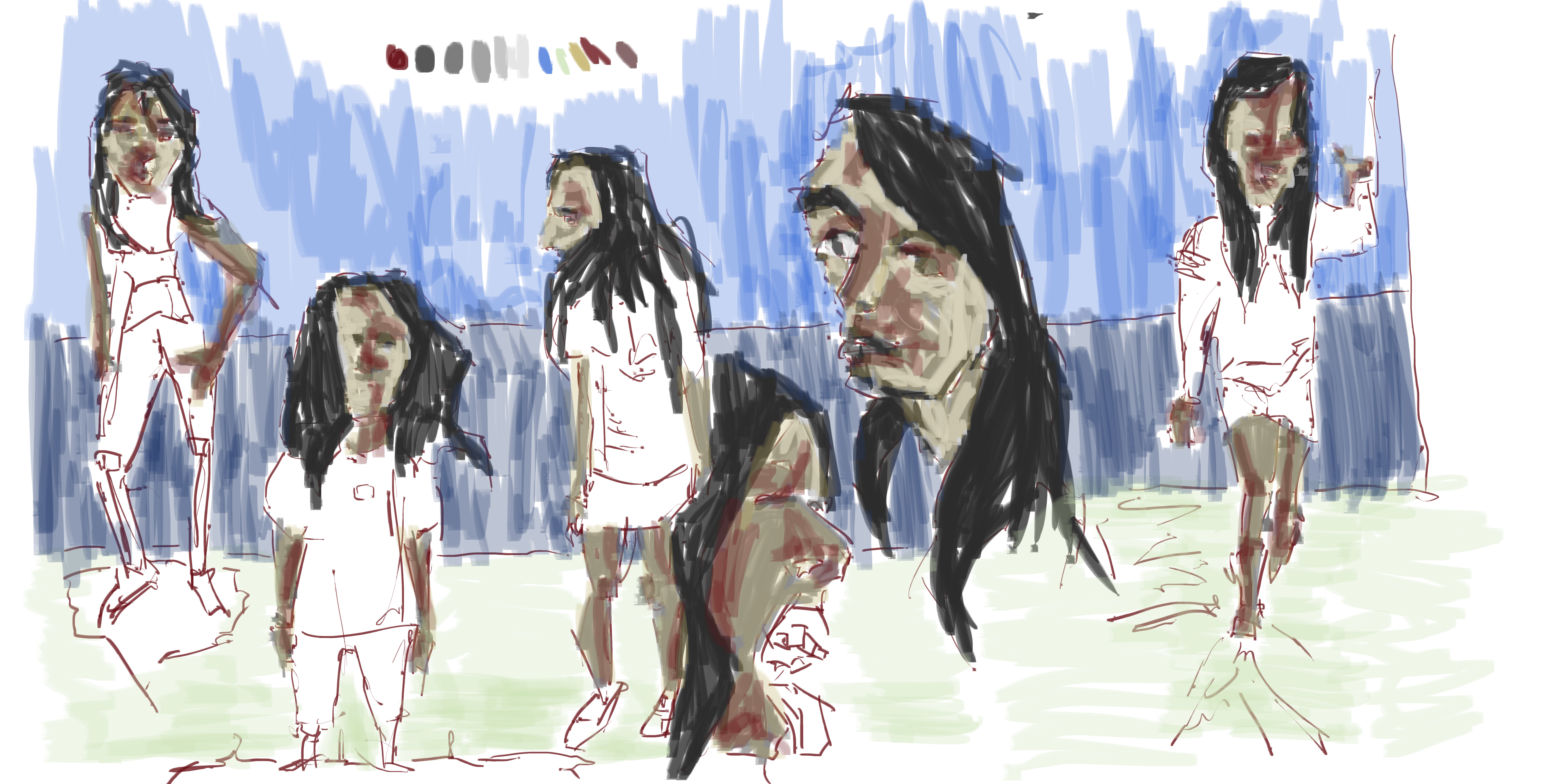 Sorted though my sketch book drawings I took them into GIMP and began a paint over process. Here’s what I’ve done so far: