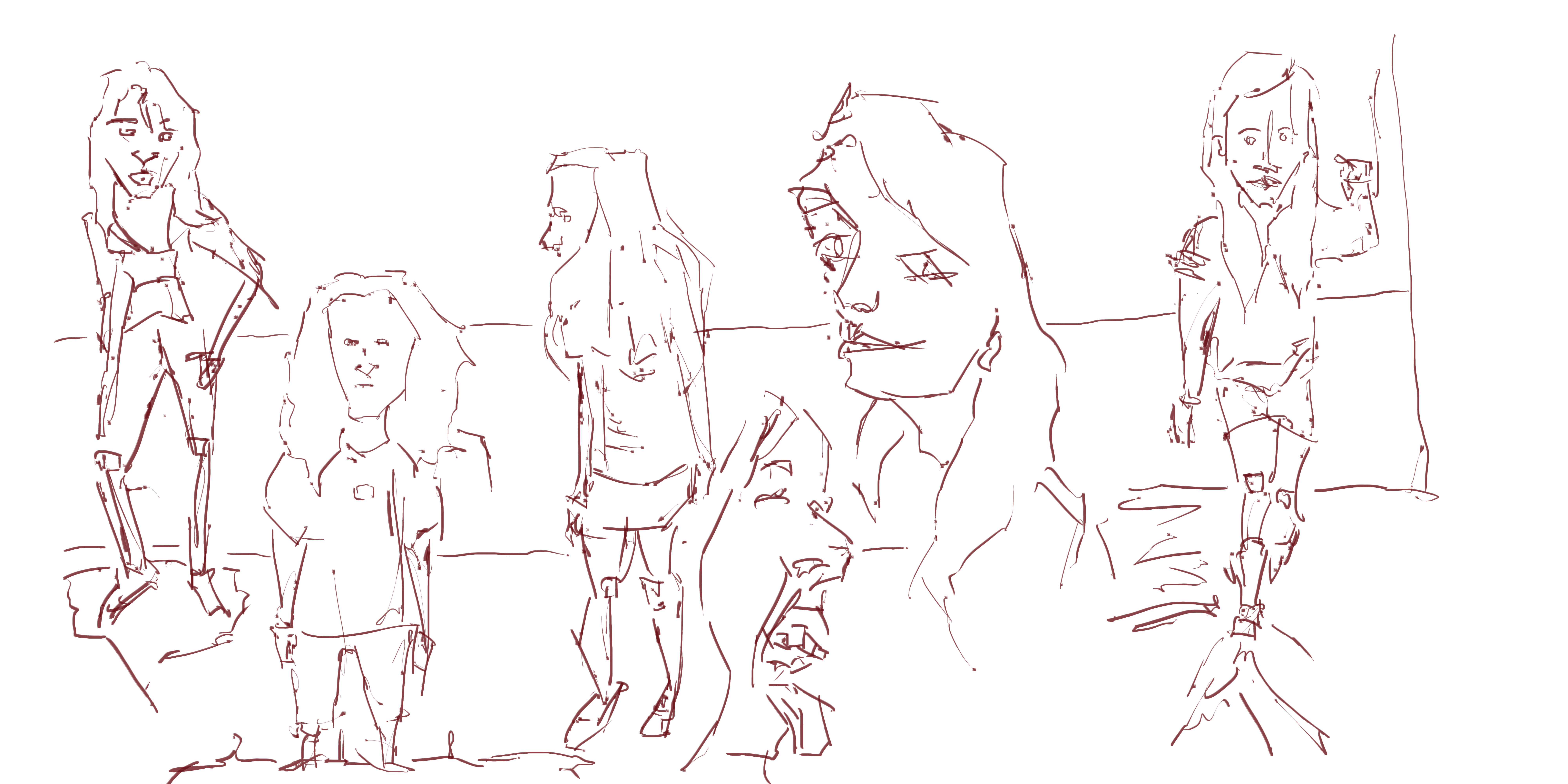 Line. The four figures are all the same height with the two portraits slightly wider than the figures. I especilly enjoyed doing the line on portrait with the tongue out - it’s very unusal and nothing like a normal portrait. Yay for differences.