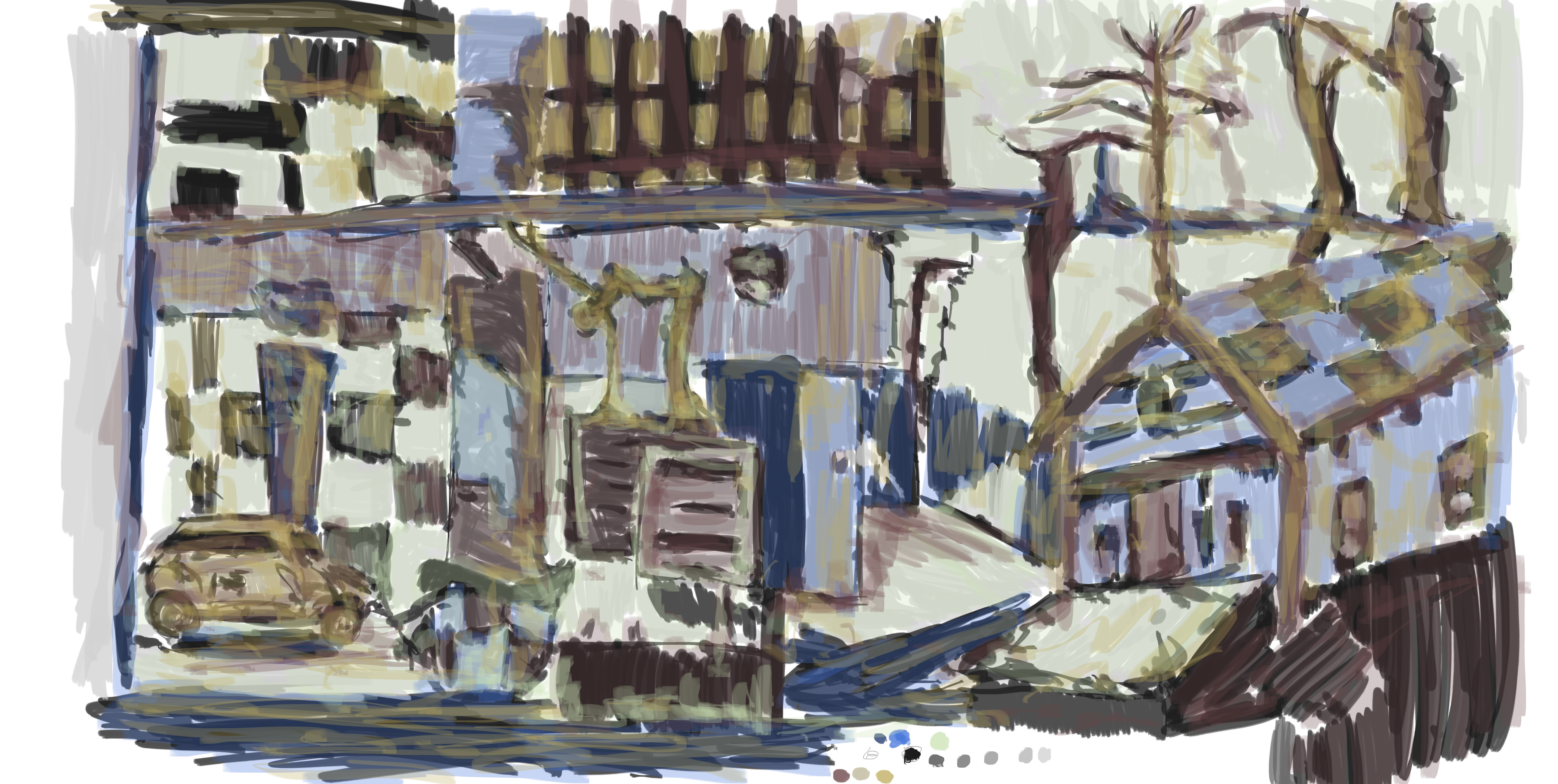 Another street view. Paints great with how quickly it spreads. Roger always said ‘painting is easier because it spreads quickly’ when comparing it to painting. Very true - I can cover more of a area with paint than draw and not get tired.
