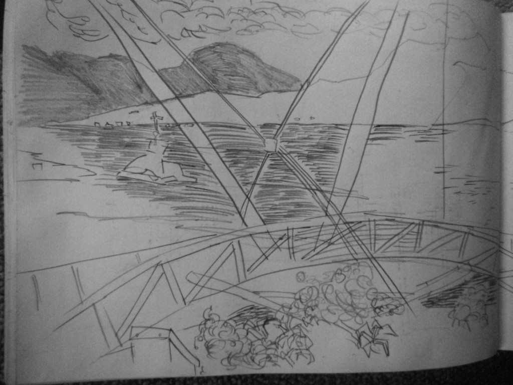 This drawing is of the waterfront. The building behind the camera is the Rowing Club.