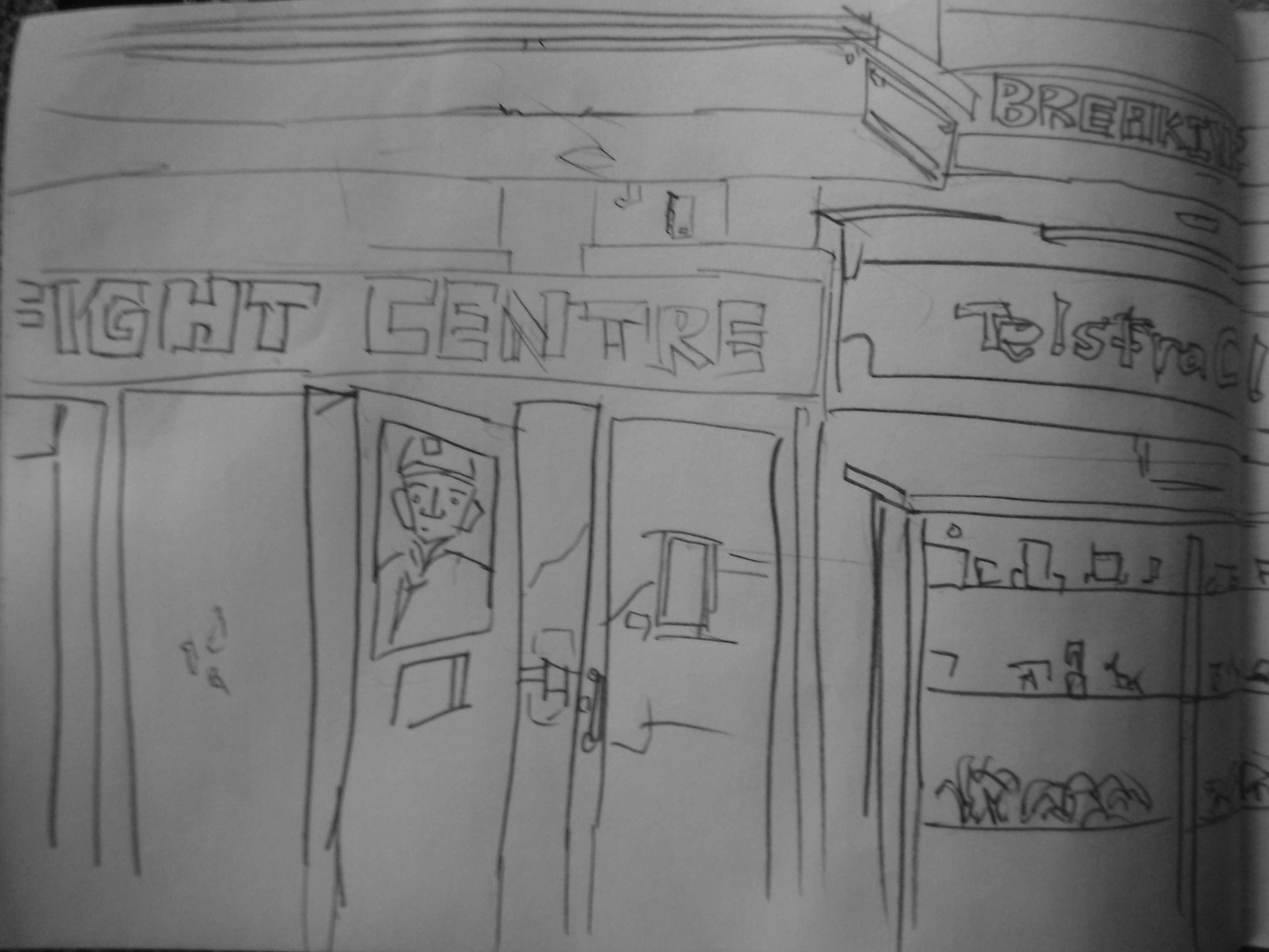 A billboard took up the majority of the page. It was advertising something about dumping rubbish and the circle that happens. I drew in areas of the poster into my work. I’m not sure about using brands in my drawings. Often I just create rectangles for writing areas. But then again - it will be more correct to add these elements in. I guess whatever feels right.