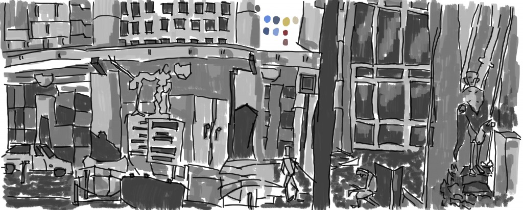Awake early this morning - 5am. Wanted to get straight into the digital painting. I first checked Reddit SketchDaily - Free Draw Friday. Fantastic - can just do a street scene.